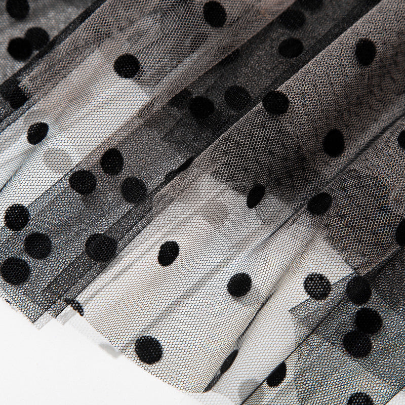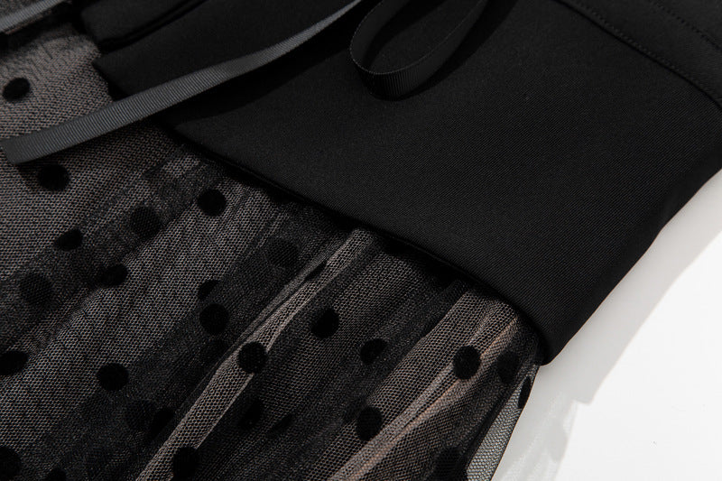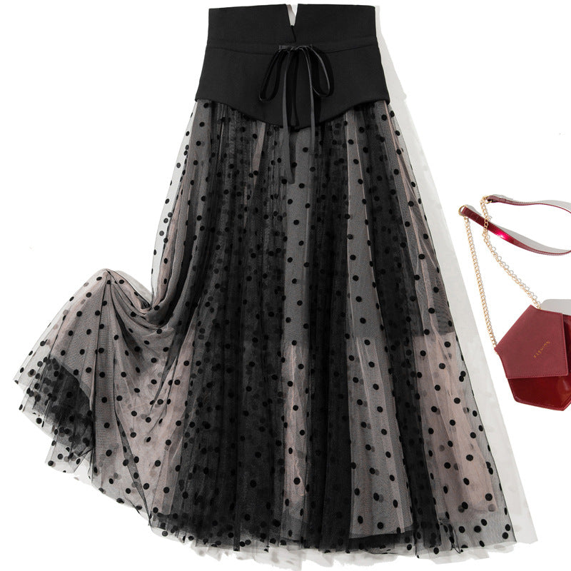 Bow Contrast Color Polka Dot Fake Waist Seal Skirt