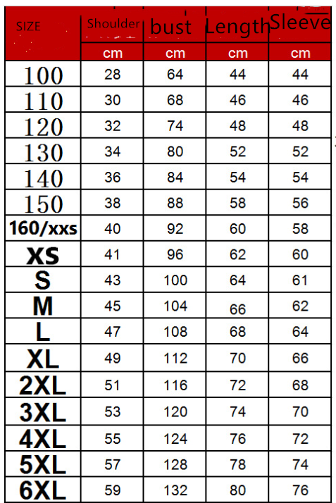 size:XXS, XS, S, M, L, XL, XXL, 3XL, 4XL, 5XL, 6XL,
