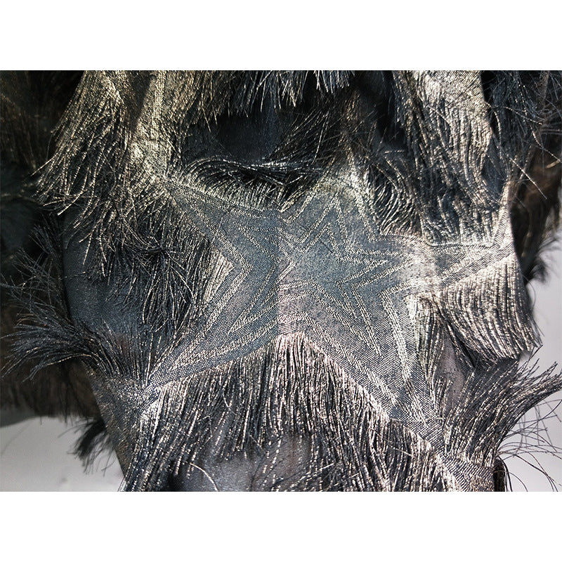 Gold Thread Elastic Waist Long Feather Skirt for women