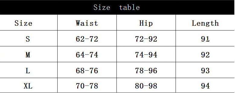 | size | waist(cm) | Hip(cm) | length(cm) |