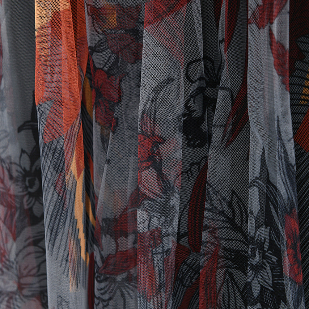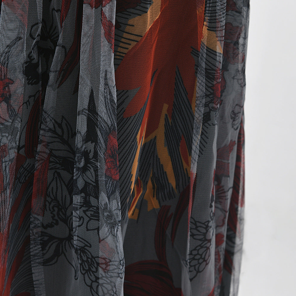 Irregular Pattern Printed Mesh High Waist Double Layer Tulle Lace Skirt