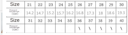 Size: 21,22,23,24,25,26,27,28,29,30,21-25,26-30