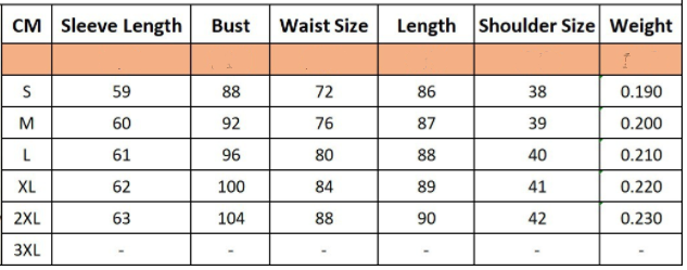 Size: S, M, L, XL, 2XL unit: cm