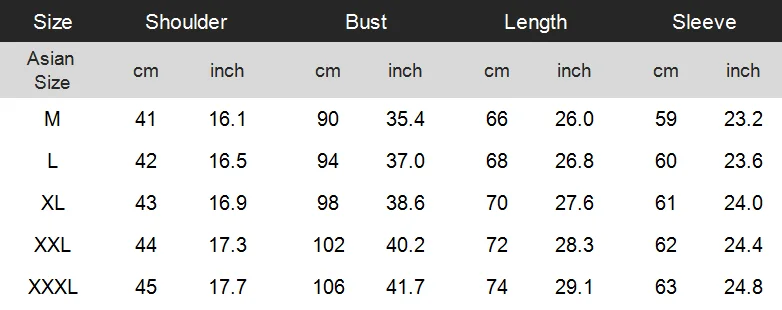 1. Asian sizes are 1 to 2 sizes smaller than European and American people. Choose the larger size if your size between two sizes. Please allow 2-3cm differences due to manual measurement.