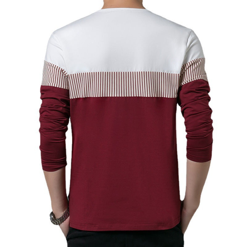 Men's Fake Pocket Slim Vertical Stripes Color Blocking Long Sleeve Casual T-Shirt