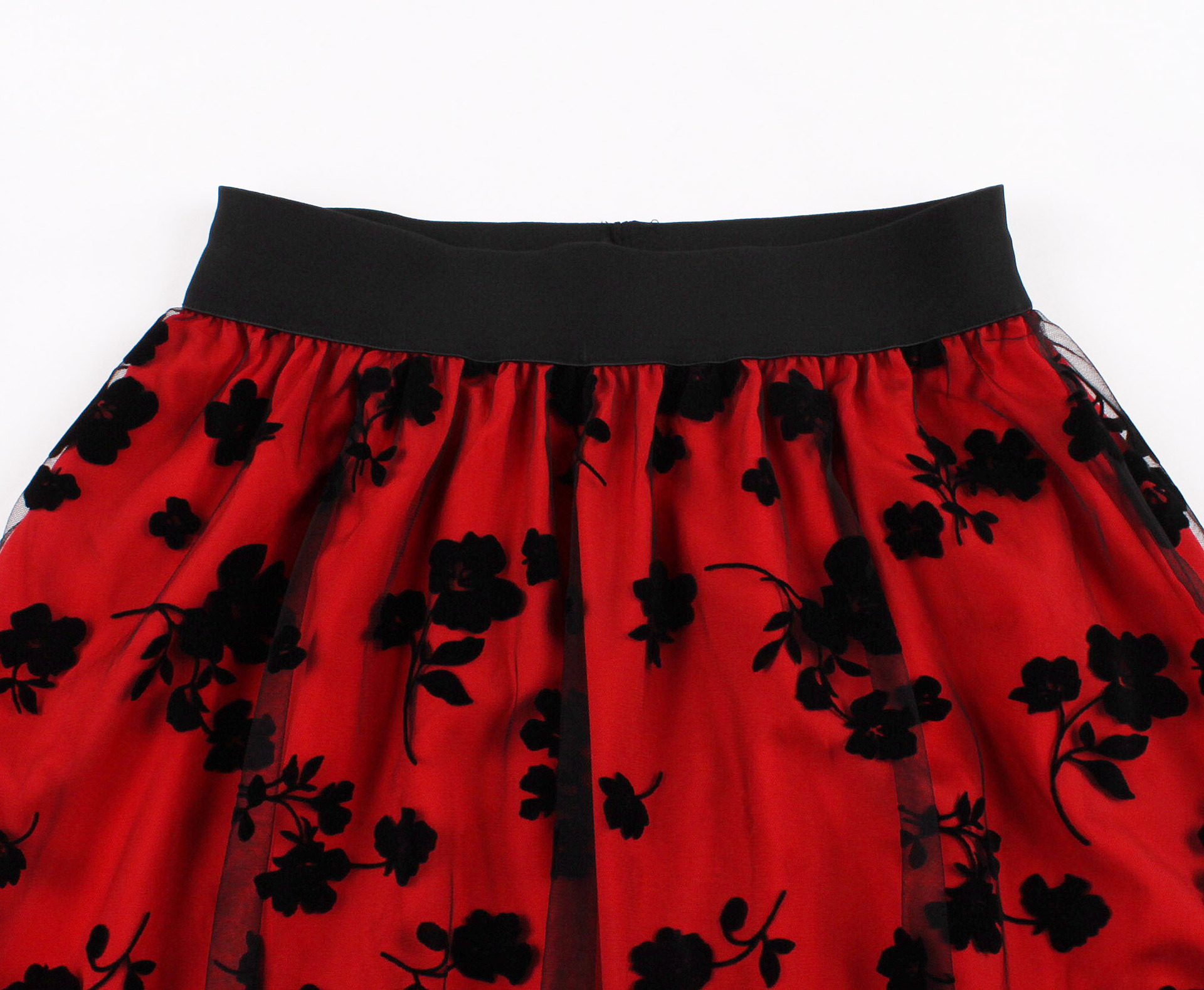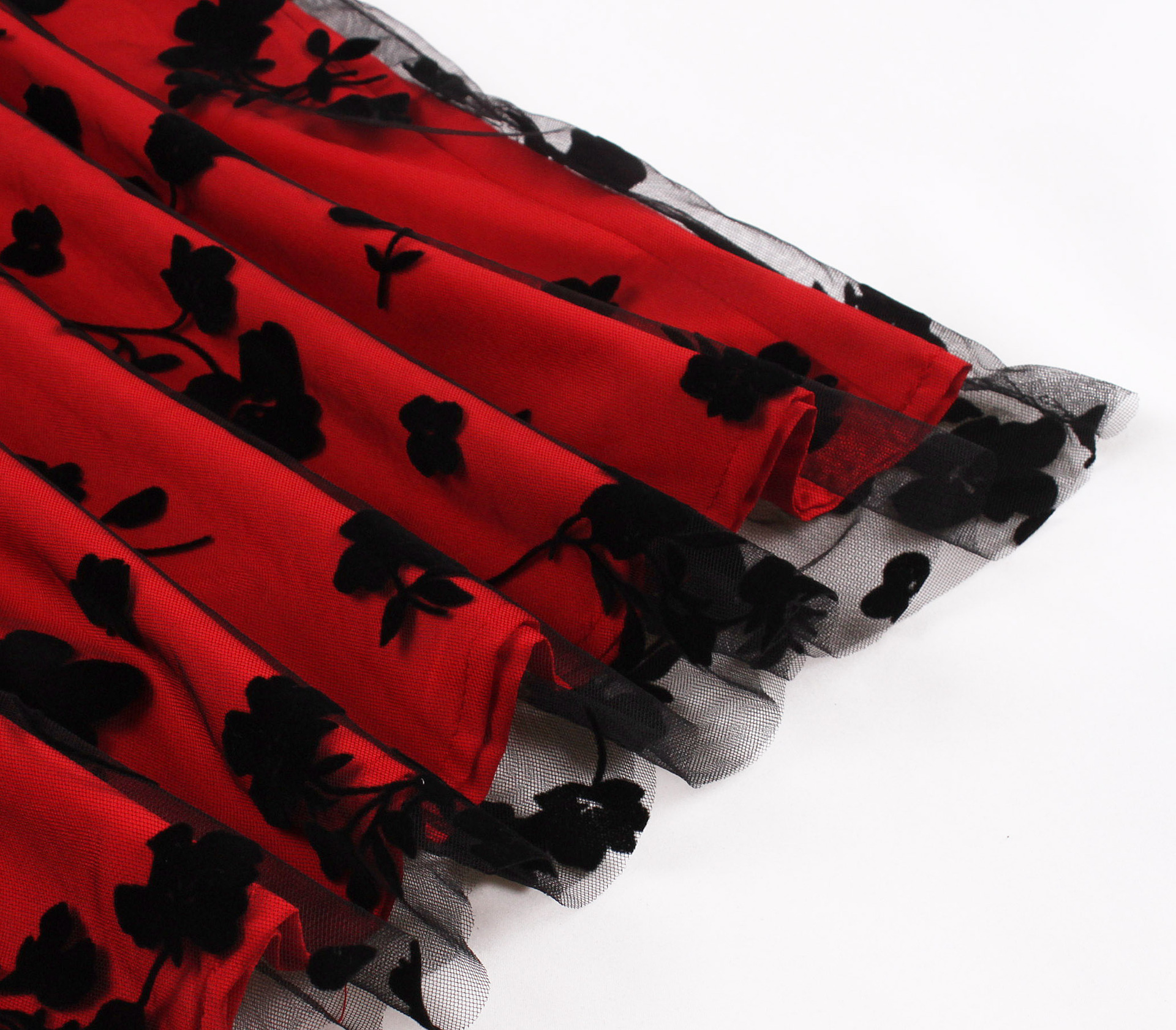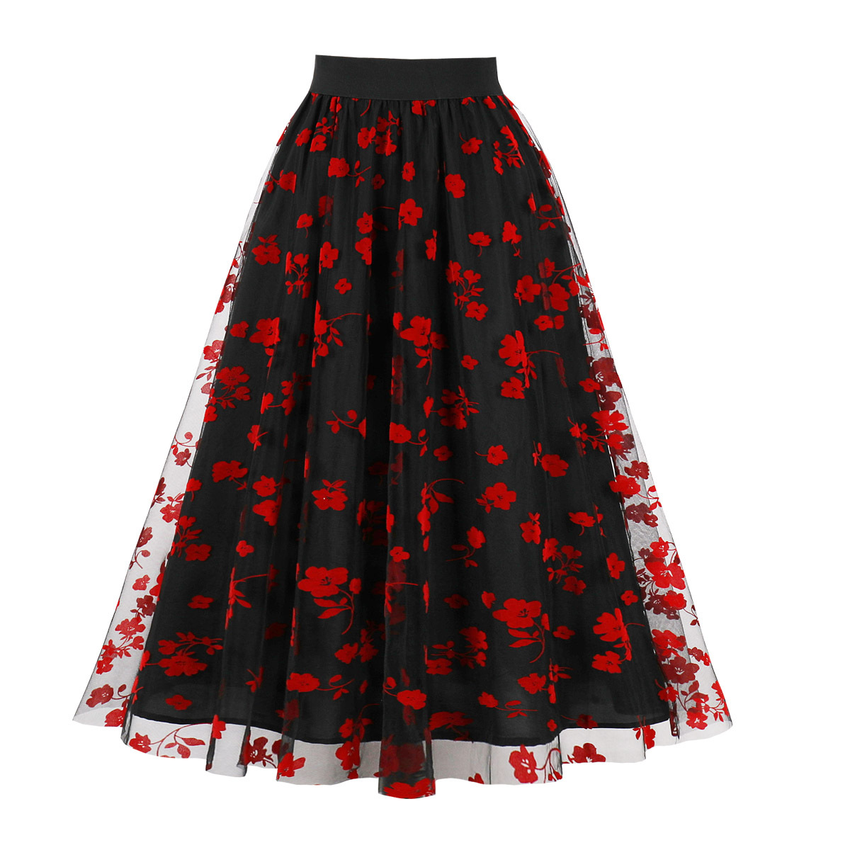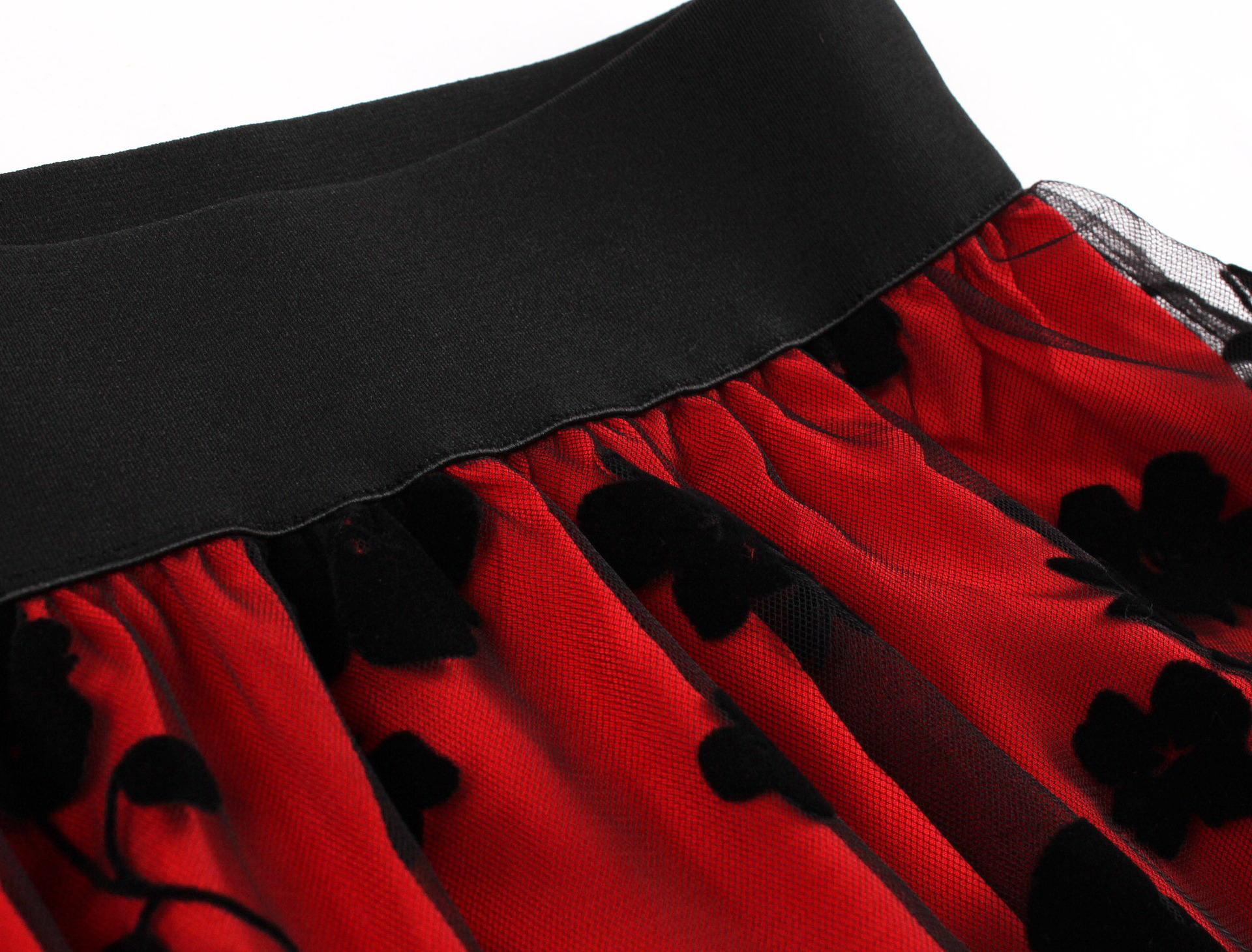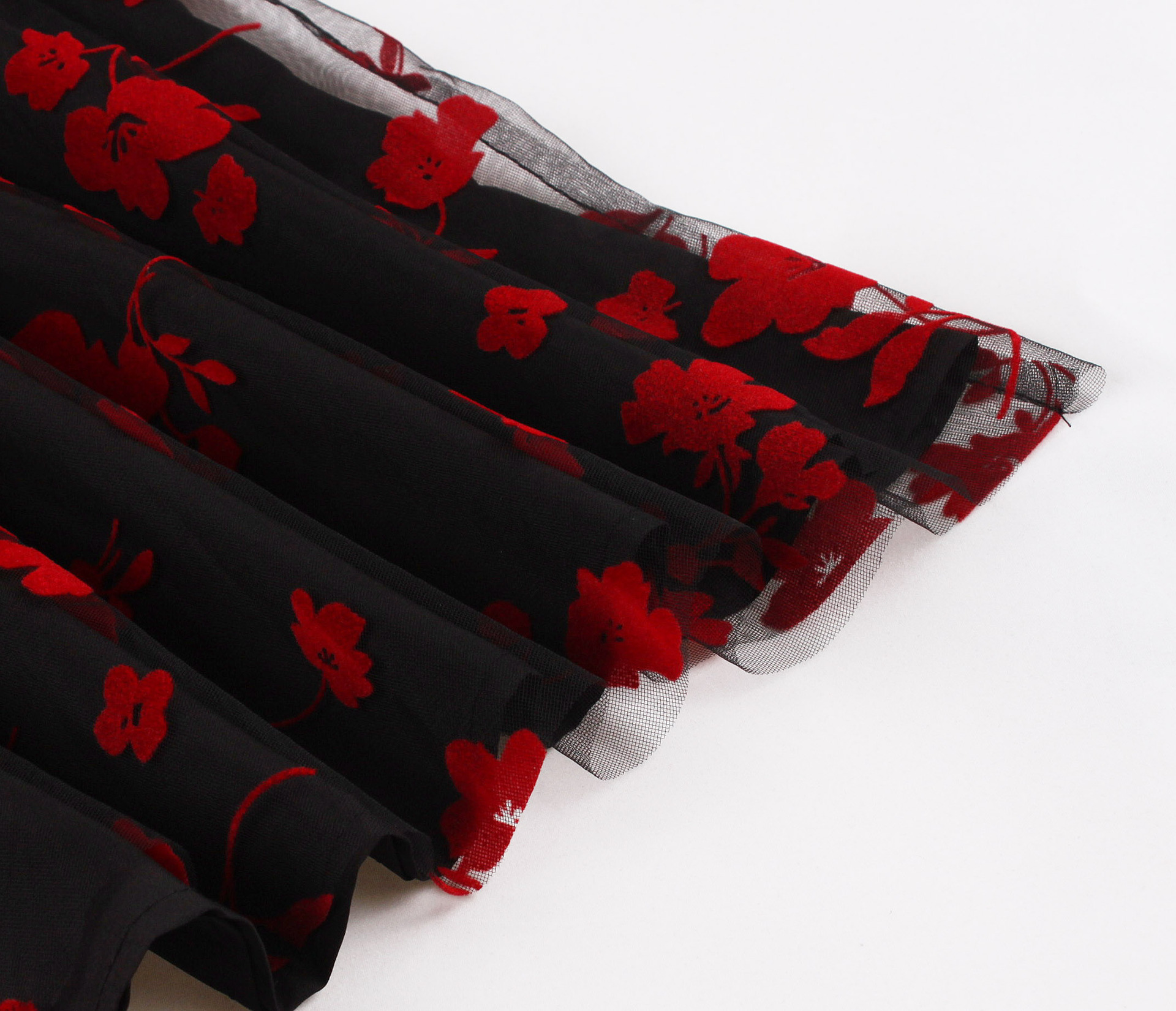 Mesh Double Layer Flock Printing Big Hem Skirt