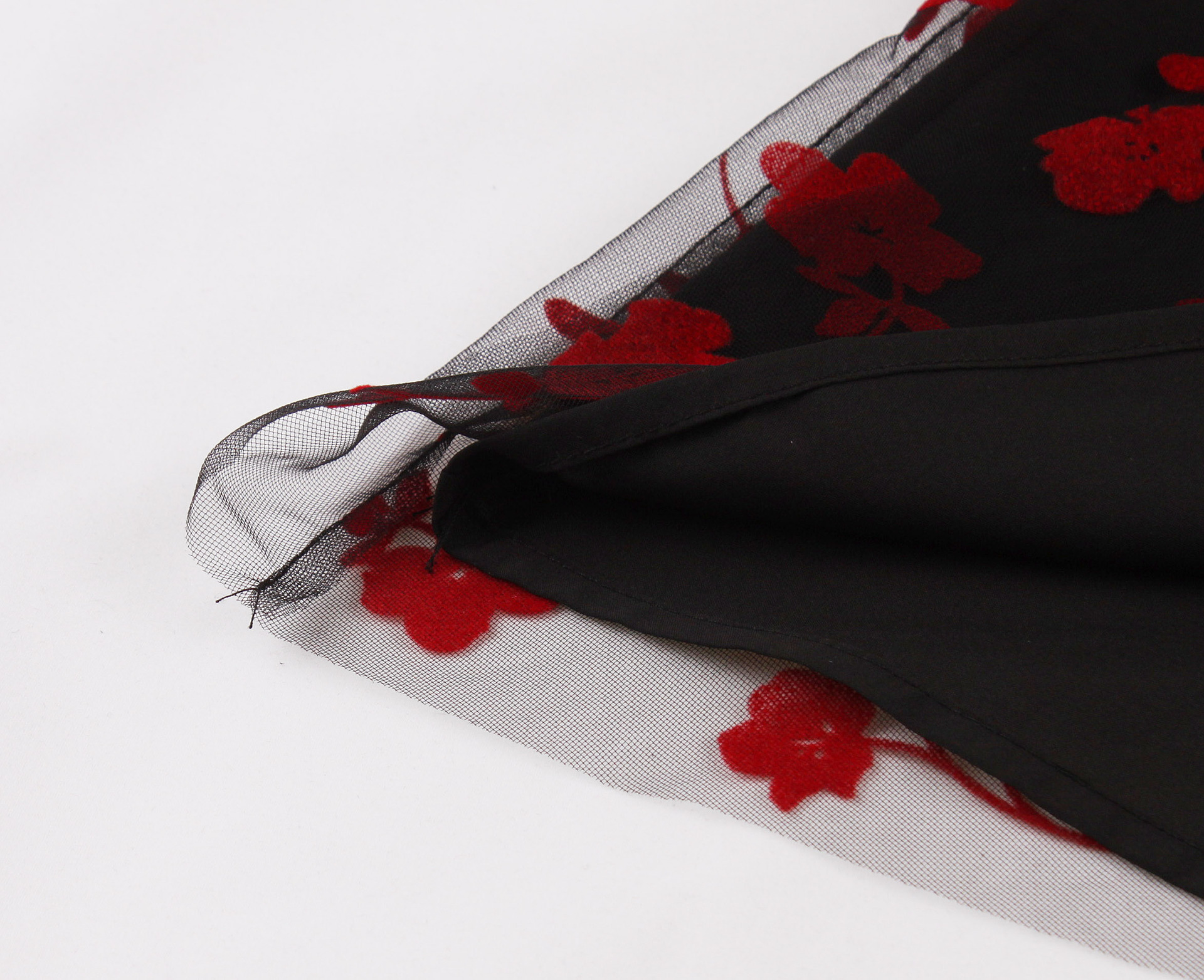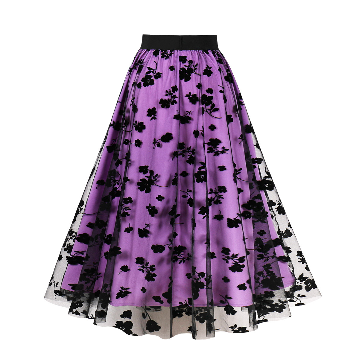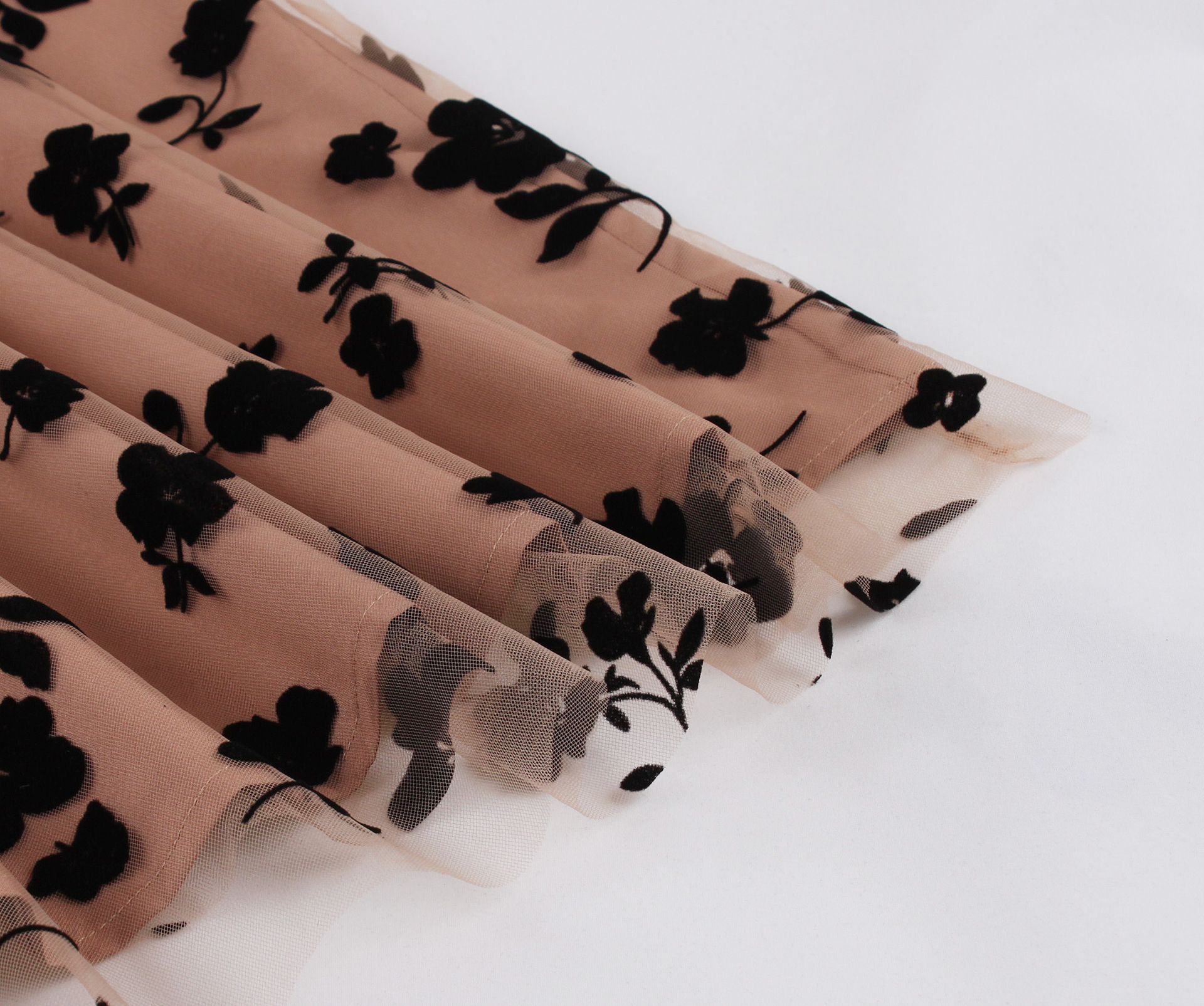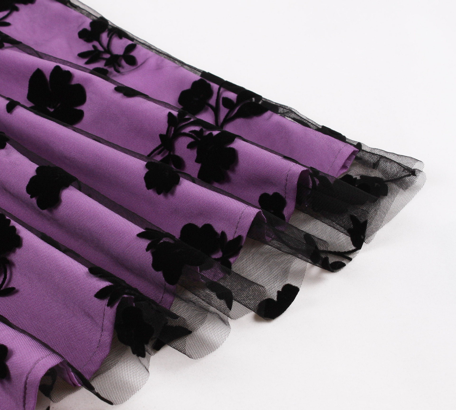 Mesh Double Layer Flock Printing Big Hem Skirt