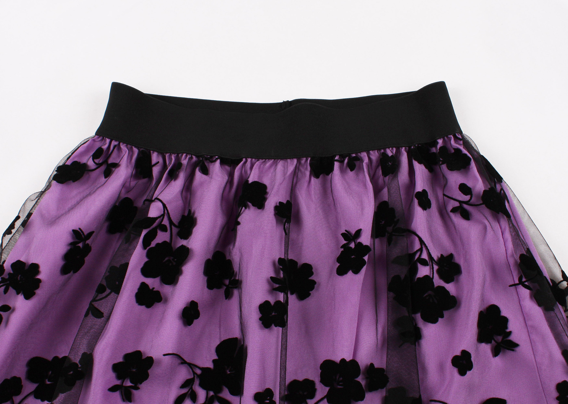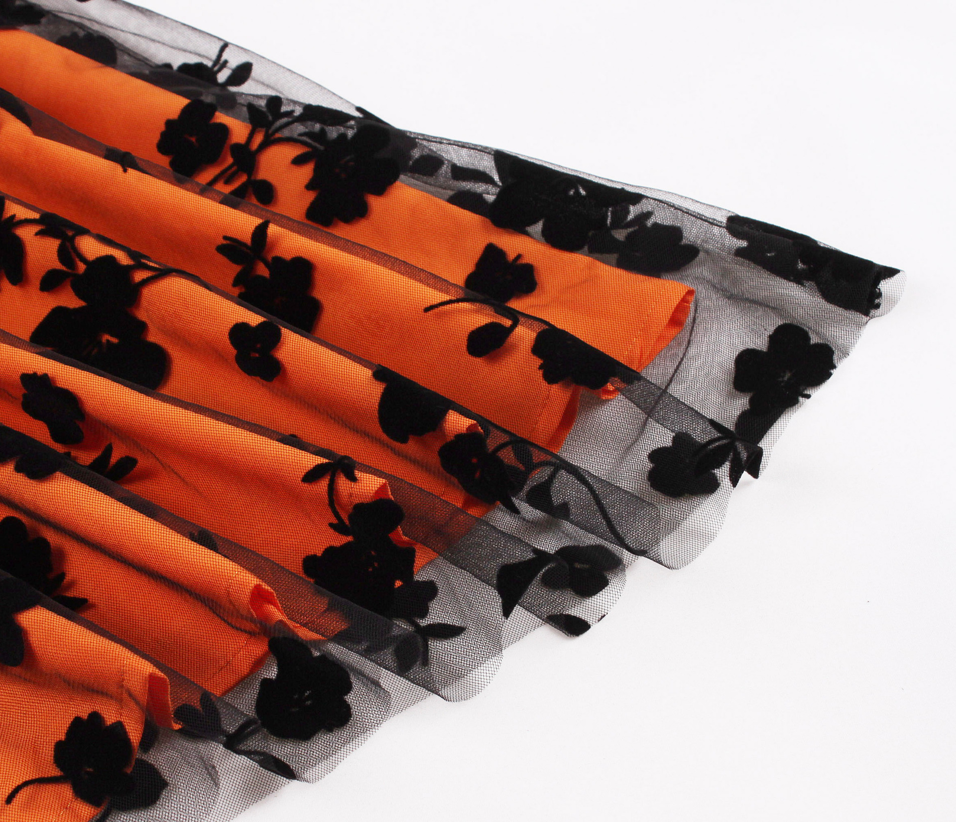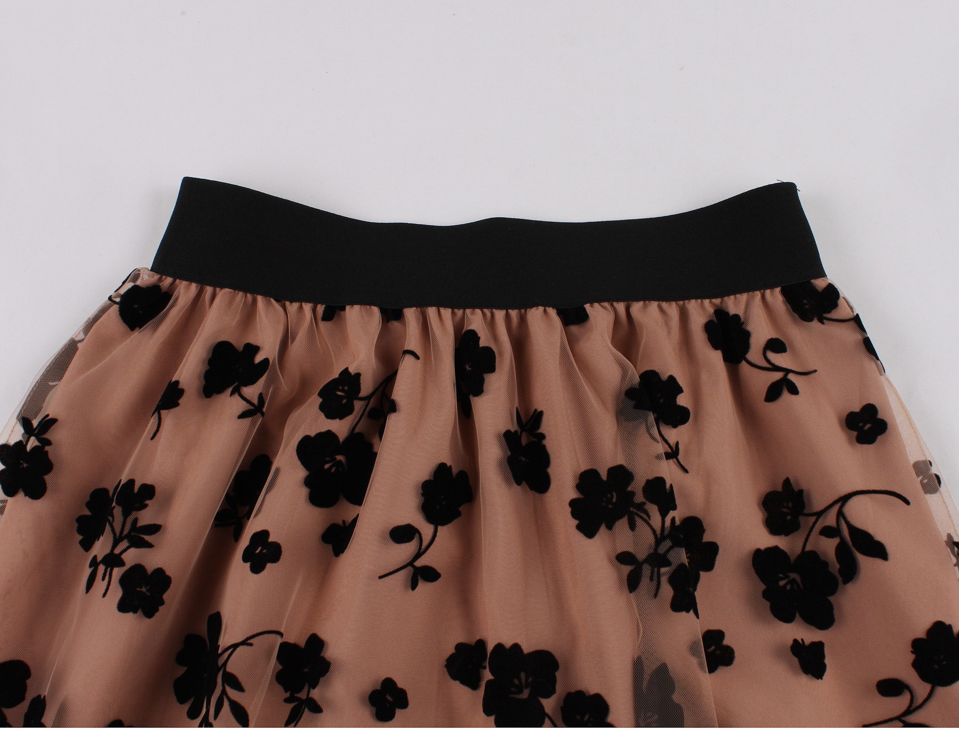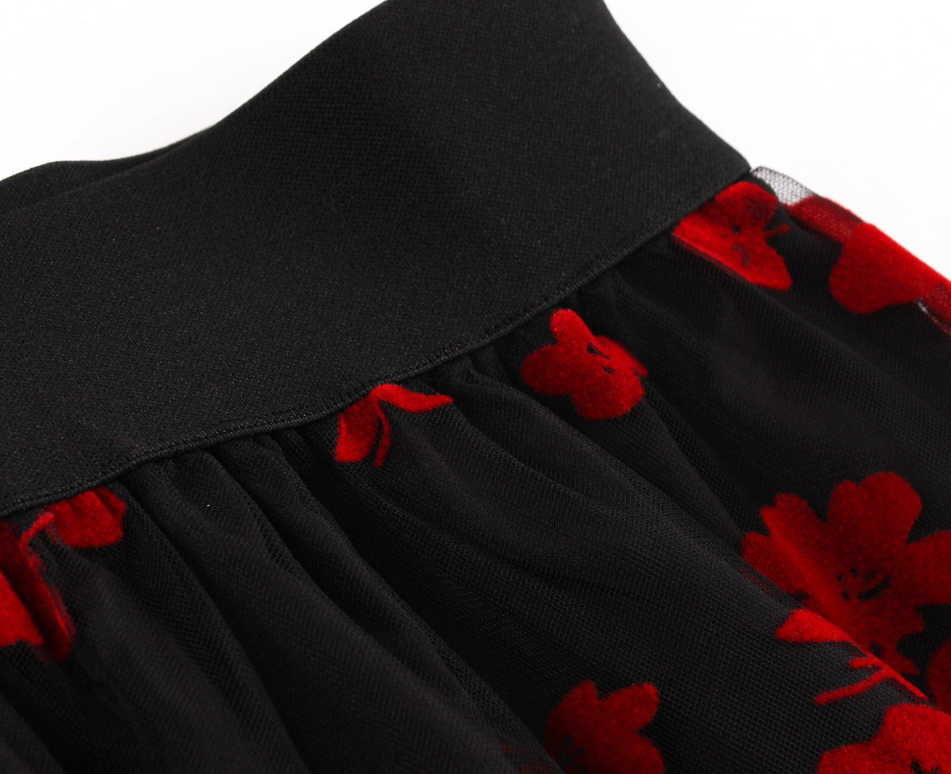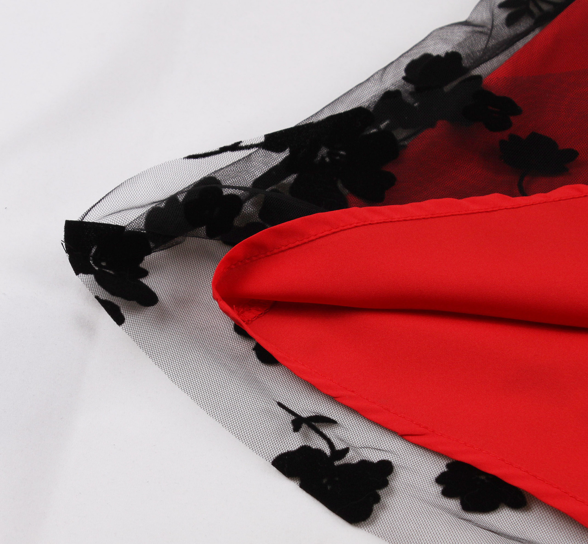 Mesh Double Layer Flock Printing Big Hem Skirt