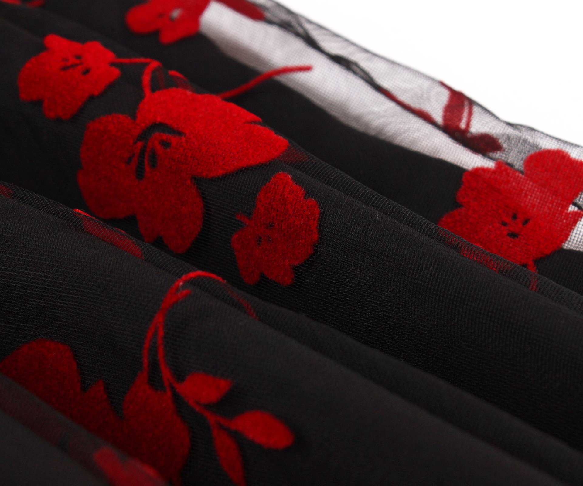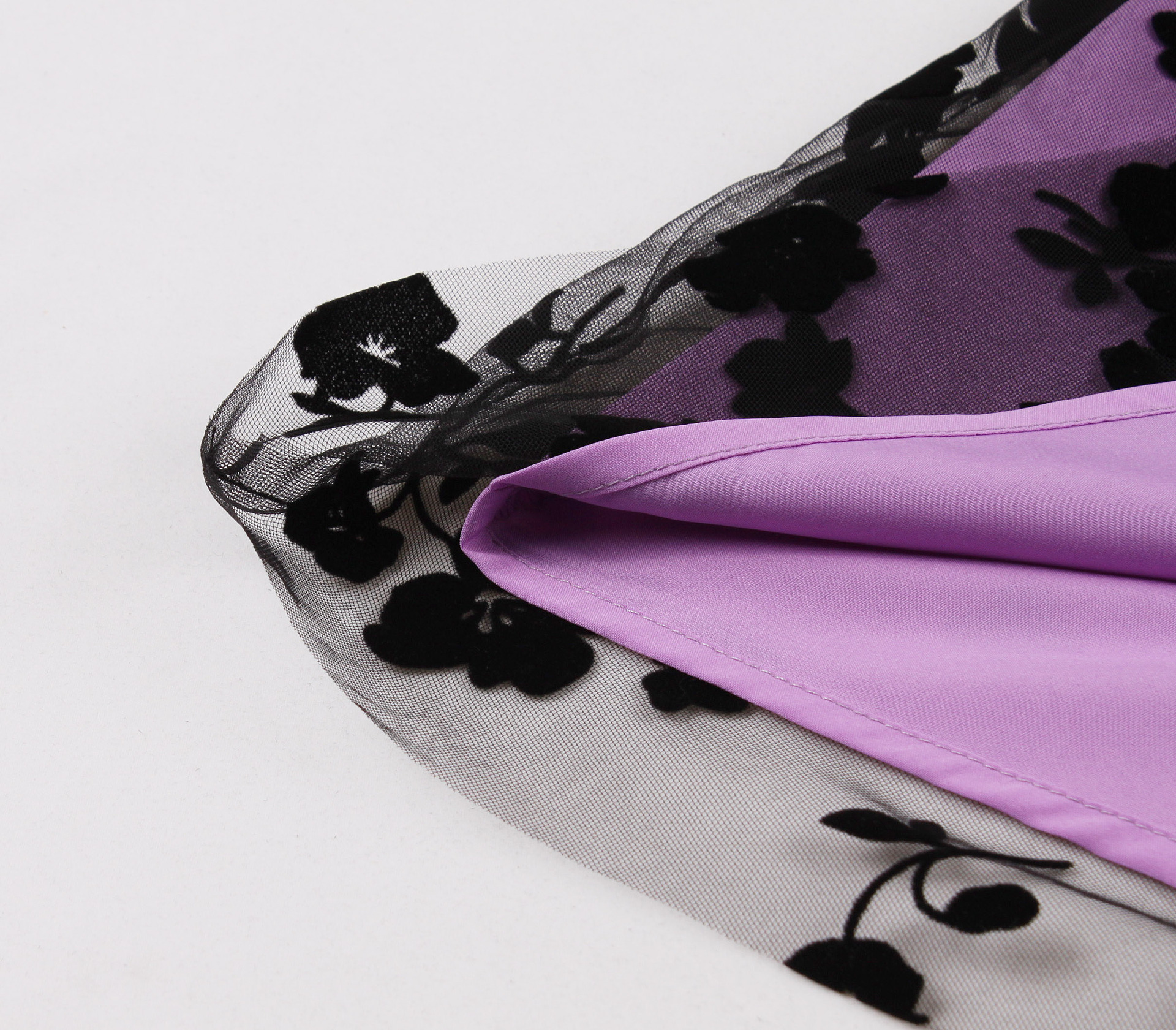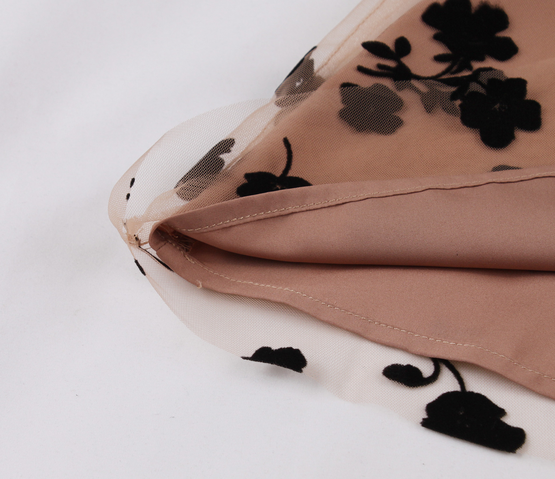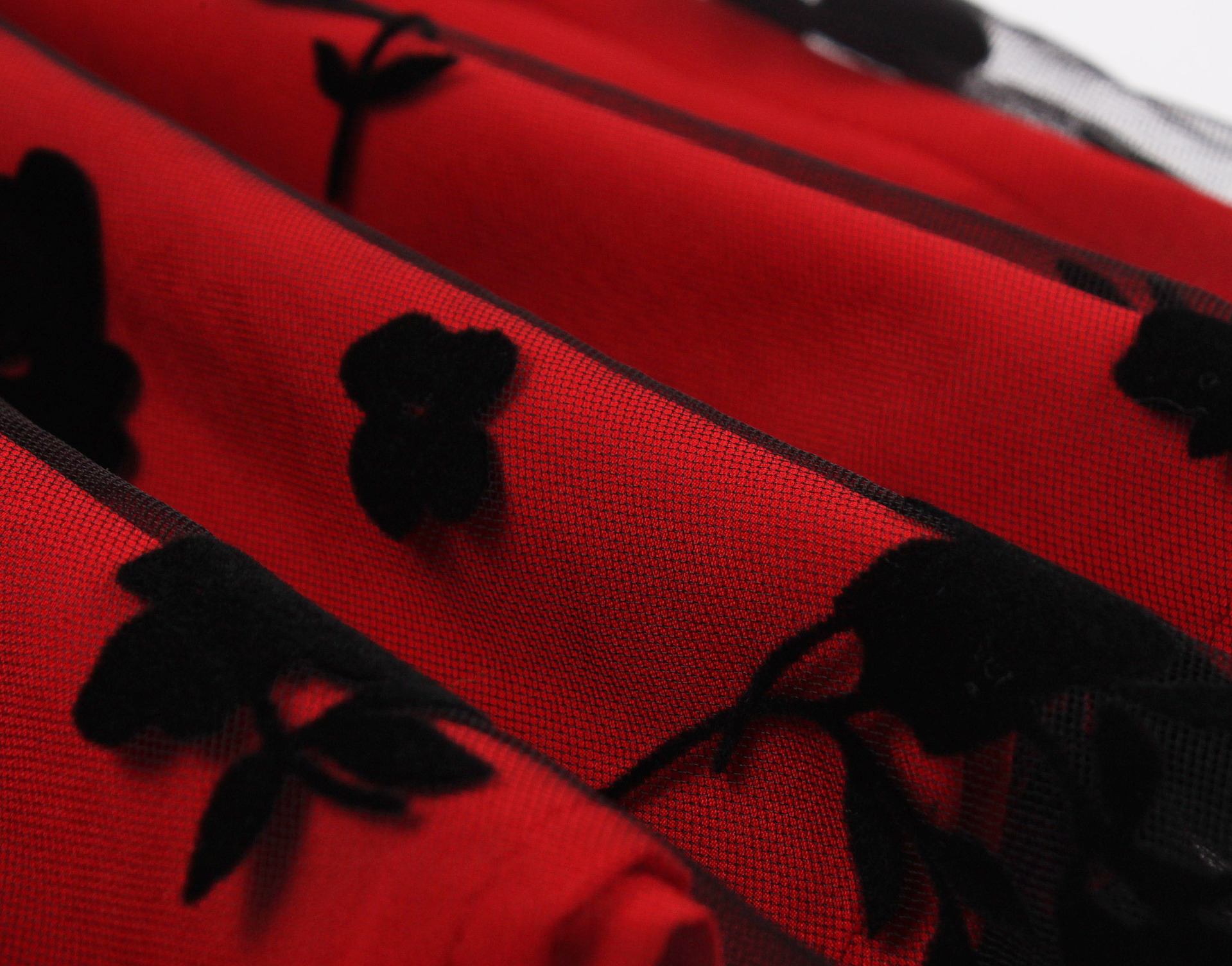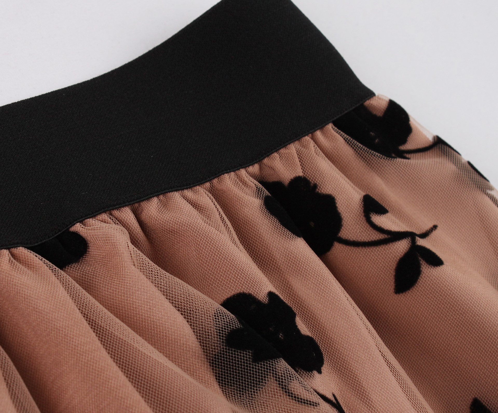 Mesh Double Layer Flock Printing Big Hem Skirt
