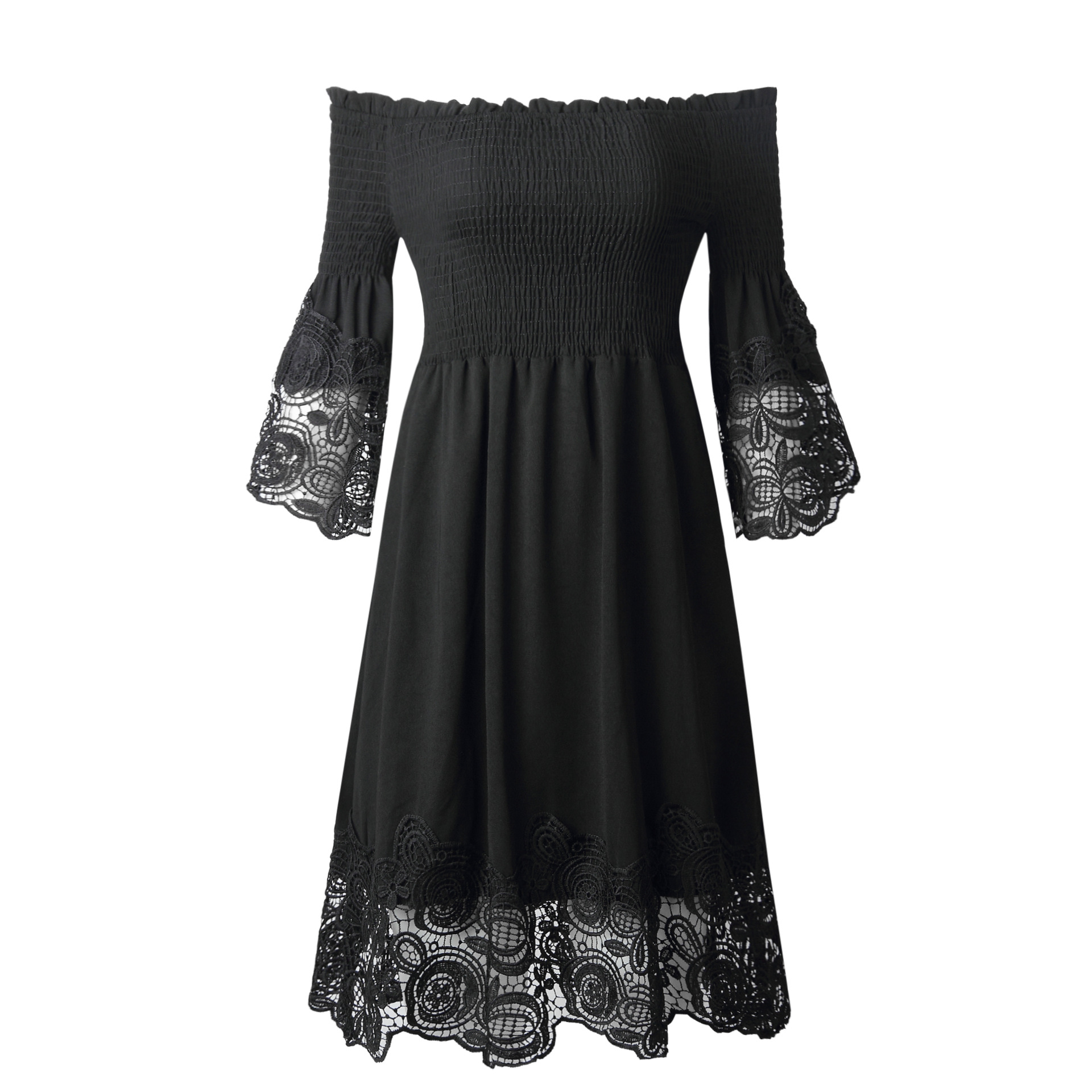 One-shoulder backless solid color lace dress
