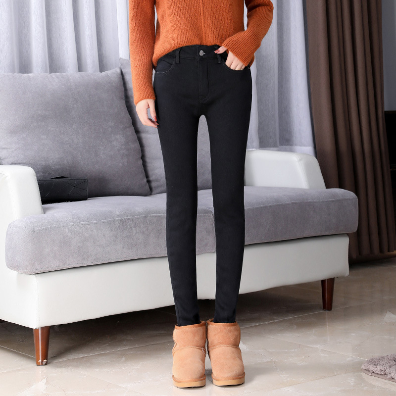 Thick lamb cashmere fashion stretch jeans
