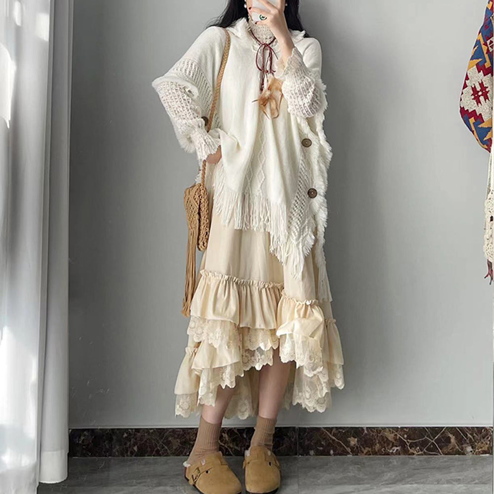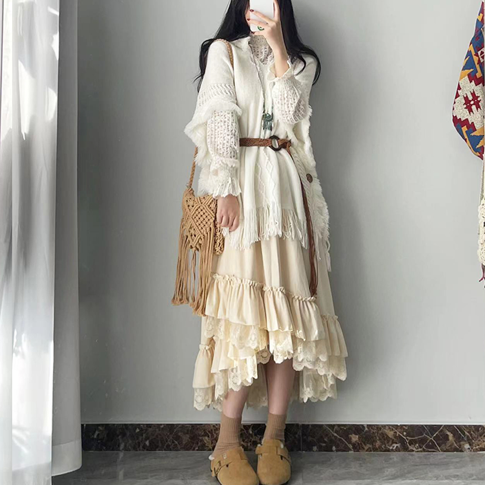 Velvet Dress Thick Lace Large Skirt Tiered Skirt