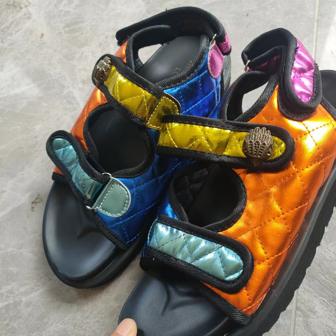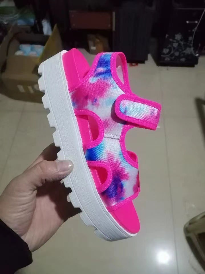 Women's Sandals European And American Plus Size Classic Style Plaid Velcro Thick Low Beach